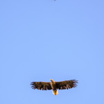 Naabrite katusel elavast jõgitiirust olen juba kirjutanud. Täna oli mingil hetkel tohutu kisa ja tiir hakkas oma pesa kaitsma. Tõin toast fotoka, et täpsemalt vaadata, mis toimub ja Jaan sai sellised tüübid pildile: merikotkas ja raudkull.