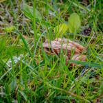 Tänane ilm oli küll tuuline, aga kuiv ja suhteliselt soe. Päike paistis läbi mingi vine. Üritasin seda ilma ära kasutada ja rohisin iiriste vahelt umbrohud välja. Jah muidugi, kõik need kannikeselised on ilusad, aga mulle tõesti ei sobi see, et nad terve peenra juba enda alla võtavad. Sama lugu on karikakraga. Tuleb süda kõvaks teha ja näpud tööle panna. Iiriste peenar on nii suureks kasvanud, et servad said küll korda, aga keskmine osa tahab veel kõvasti hoolt ja vaeva saada. Selle kallale lihtsalt ei viitsinud minna. Selle asemel võtsin hoopis kõige uuema päevaliiliate ja nartsisside peenra ette. Leidsin sealt väikese sisalikulise, kes ei liigutanud oimugi, et ma teda sabast tõstsin ja kivi peale panin. Arvasin, et ta on niikuinii surnud ja küll ma pärast pilti teen. Kui mul töö tehtud, siis polnud sisalikku enam kusagil. Ma ei teagi, kas ta soojenes üles ja jooksis ise ära või puhus tuul ta lihtsalt minema. Jäigi nii, et ainult konn sai pildi peale.