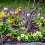 Varem oli meil aias suvaliste kohtade peal erinevaid priimulaid ja nurmenukke. Kuna need kippusid planeeritud peenardele ette jääma, kuid päriselt ära kaotada neid ei tahaks, siis kogusin ebaküdoonia alla erinevat tooni lilled kokku. Päris huvitav peenar on juba koos. Täna aga avastasin, et meil on aias veel üks lillakat tooni priimula. Tuleb see ka ümber asustada.