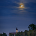 Täna hommikul tahtsime jälle kuud pildistada ja leidsime, et kella viie paiku peaks kuu olema Võnnus kiriku kohal. Kõrgust muidugi ei osanud arvestada ja nii juhtuski, et mingit super-kuu pilti me ei saanud. Saime hoopis midagi sellist: